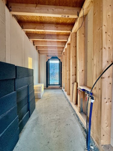 - ściany - konstrukcja drewniana + poszycie płyta fermacell + styropian 12cm + siatka, klej i grunt