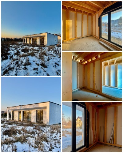 Wyjątkowa okazja! Dom modułowy o powierzchni użytkowej 63,95 m², wykonany w nowoczesnej technologii szkieletowej z certyfikowanego drewna KVH na podstawie projektu Grusza Czerwona firmy Wood Core House. Projekt został zmodyfikowany o dodatkowe duże pomieszczenie gospodarcze.