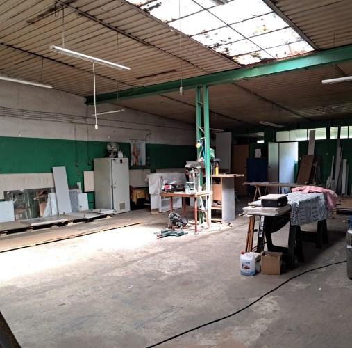Za budynkiem mieszkalnym znajduje się zabudowa warsztatowa o pow. ok.212m2, w której mieszczą się: główna hala o pow.138m2, mniejsza hala 35m2,pomieszczenia biurowe, socjalne, magazynowe.