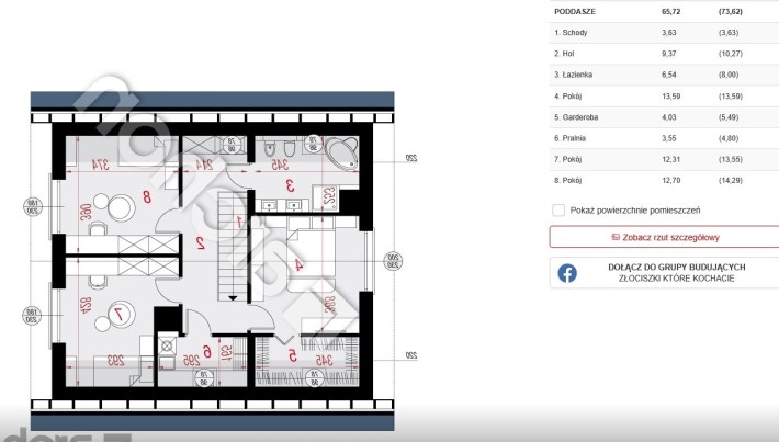 Poddasze to strefa prywatna- 3 sypialnie (w tym sypialnia główna z garderobą), rodzinna łazienka i pralnia.