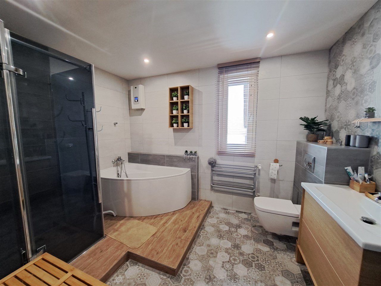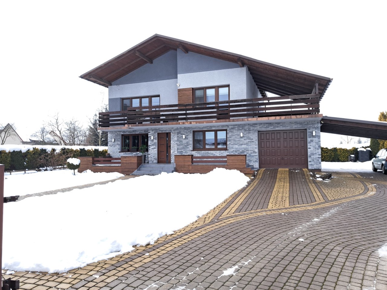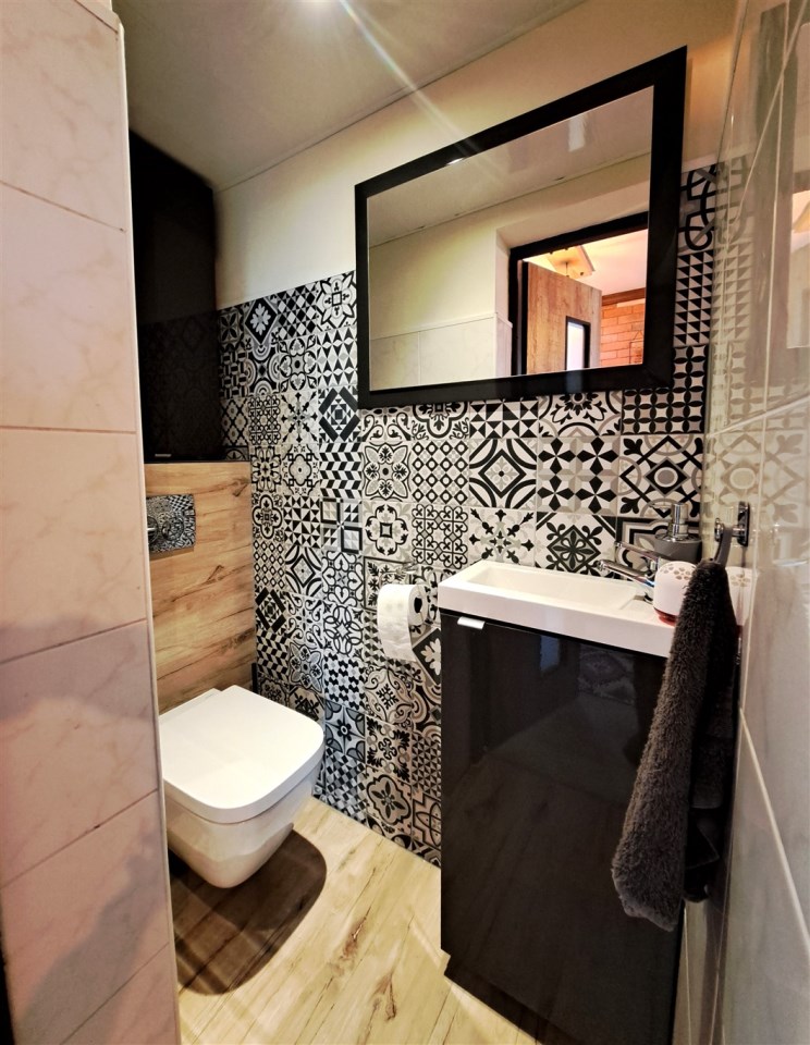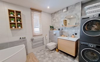 - Poddasze: przedpokój, 3 pokoje, łazienka z WC, garderoba,
