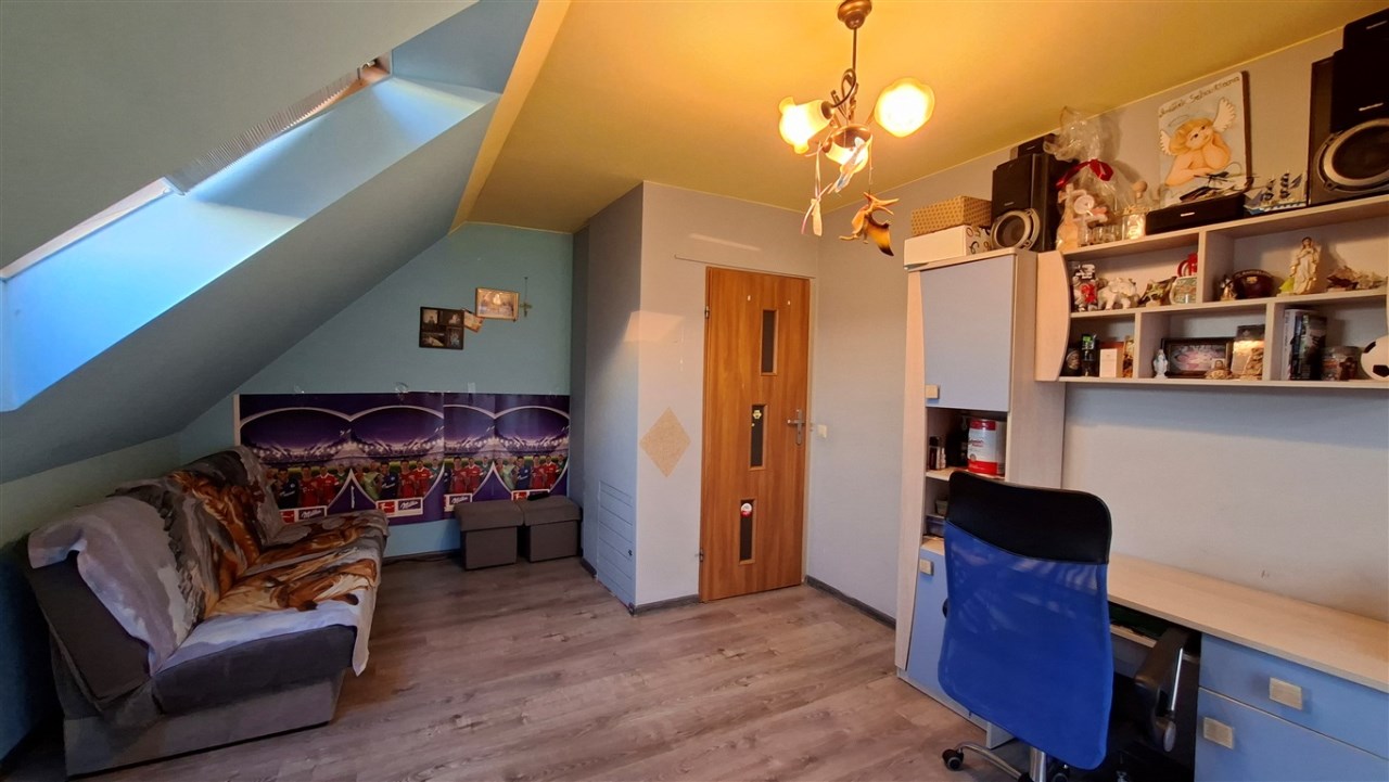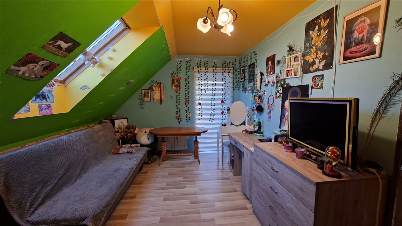 Na poddaszu o pow. ok. 90 m2 znajdują się trzy sypialnie i łazienka. Łazienka do wykończenia. Instalacje przygotowane. Pokoje ustawne, dobrze naświetlone. W pokojach ściany gładkie, podłogi wyłożone panelami.