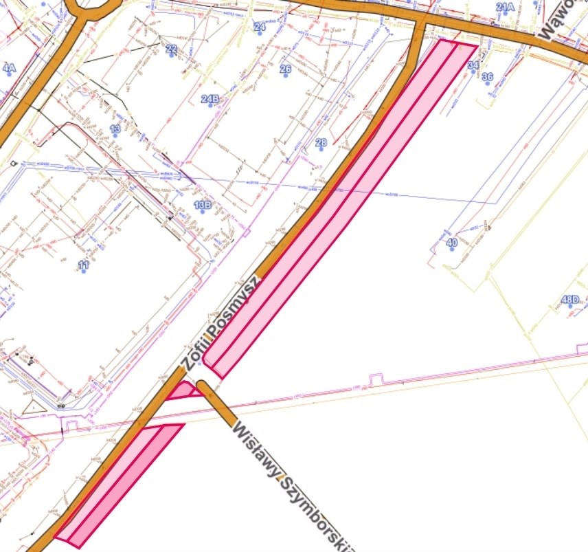 - bezpośredni dostęp do drogi publicznej (ul. Zofii Posmysz) poprzez istniejące zjazdy.