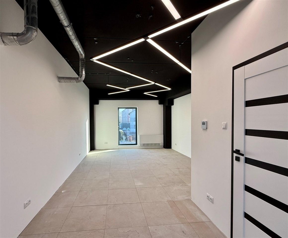 Lokal usytuowany jest na I piętrze. Zgodnie z projektem jest o powierzchni 36,40m2 w tym pomieszczenie użytkowe o pow. 32,20m2 oraz zaplecze socjalne o pow. 4,2m2. Wyposażony jest w instalację elektryczną, wodno-kanalizacyjną oraz pompę ciepła. Lokal jest w pełni wykończony i gotowy na aranżację według własnych potrzeb klienta.
