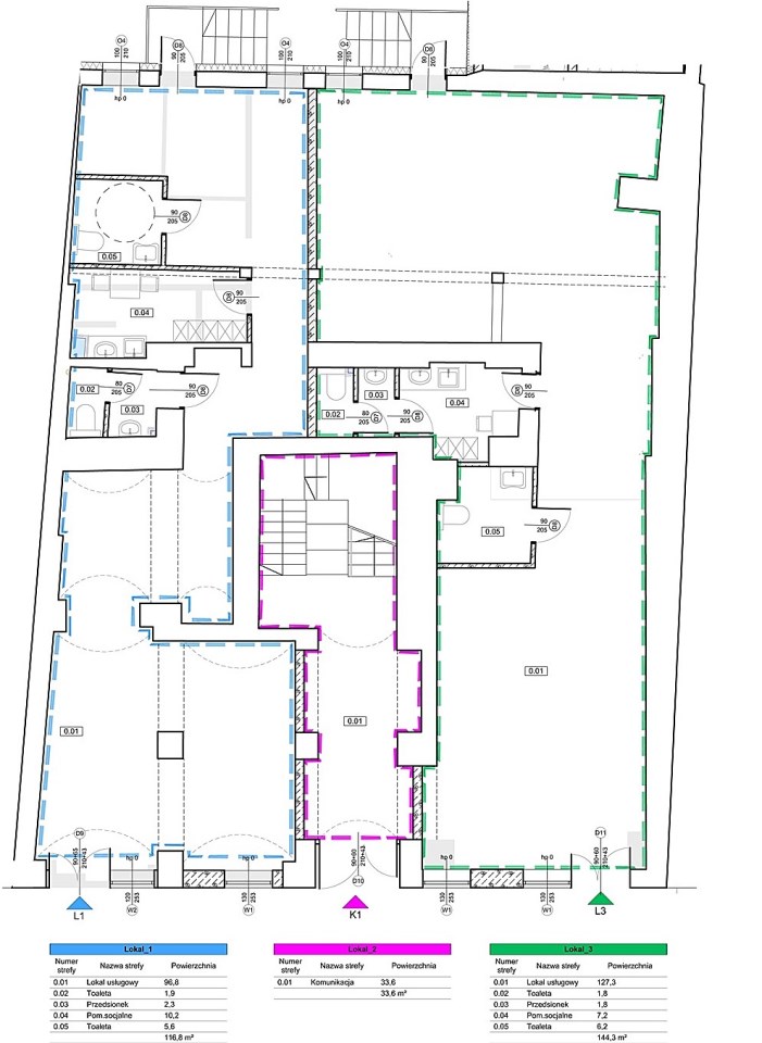 Na załączonym rzucie - lokal nr 1 - kolor niebieski