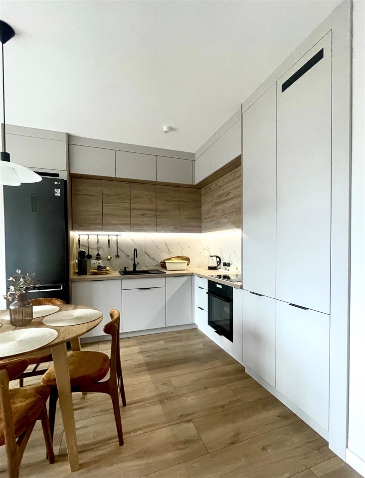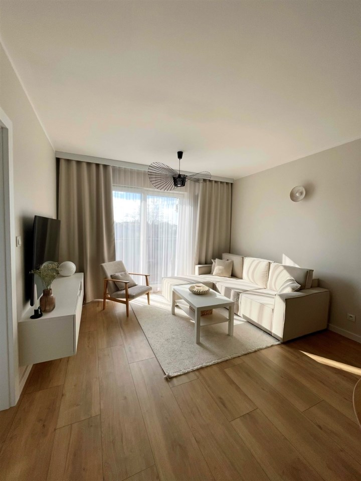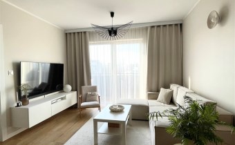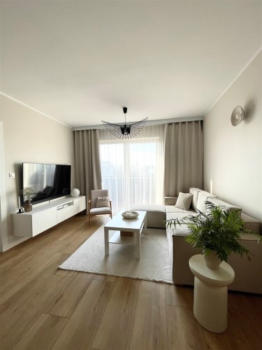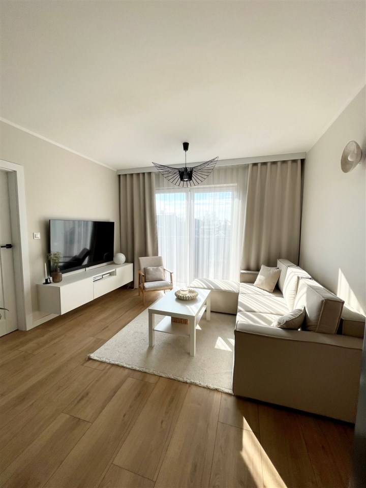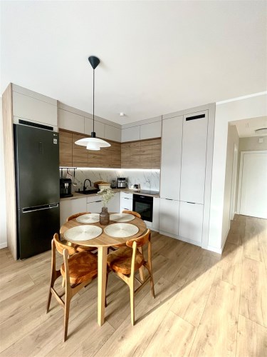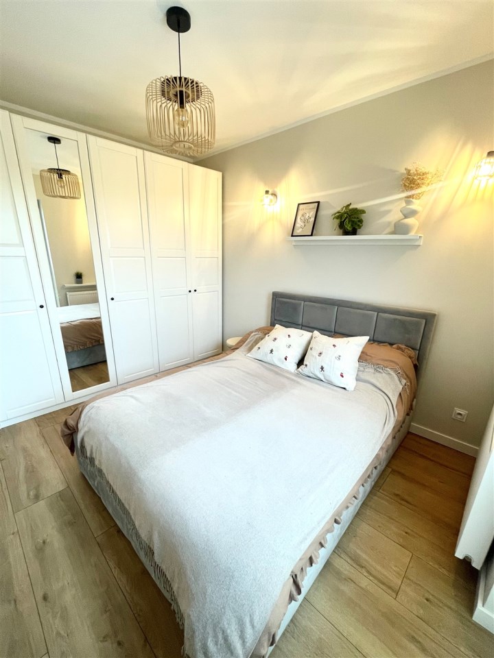 Opis mieszkania: Mieszkanie nowoczesne, komfortowe i funkcjonale, wyposażone w meble kuchenne wraz z AGD, łazienka umeblowana, zabudowa szaf w przedpokoju.