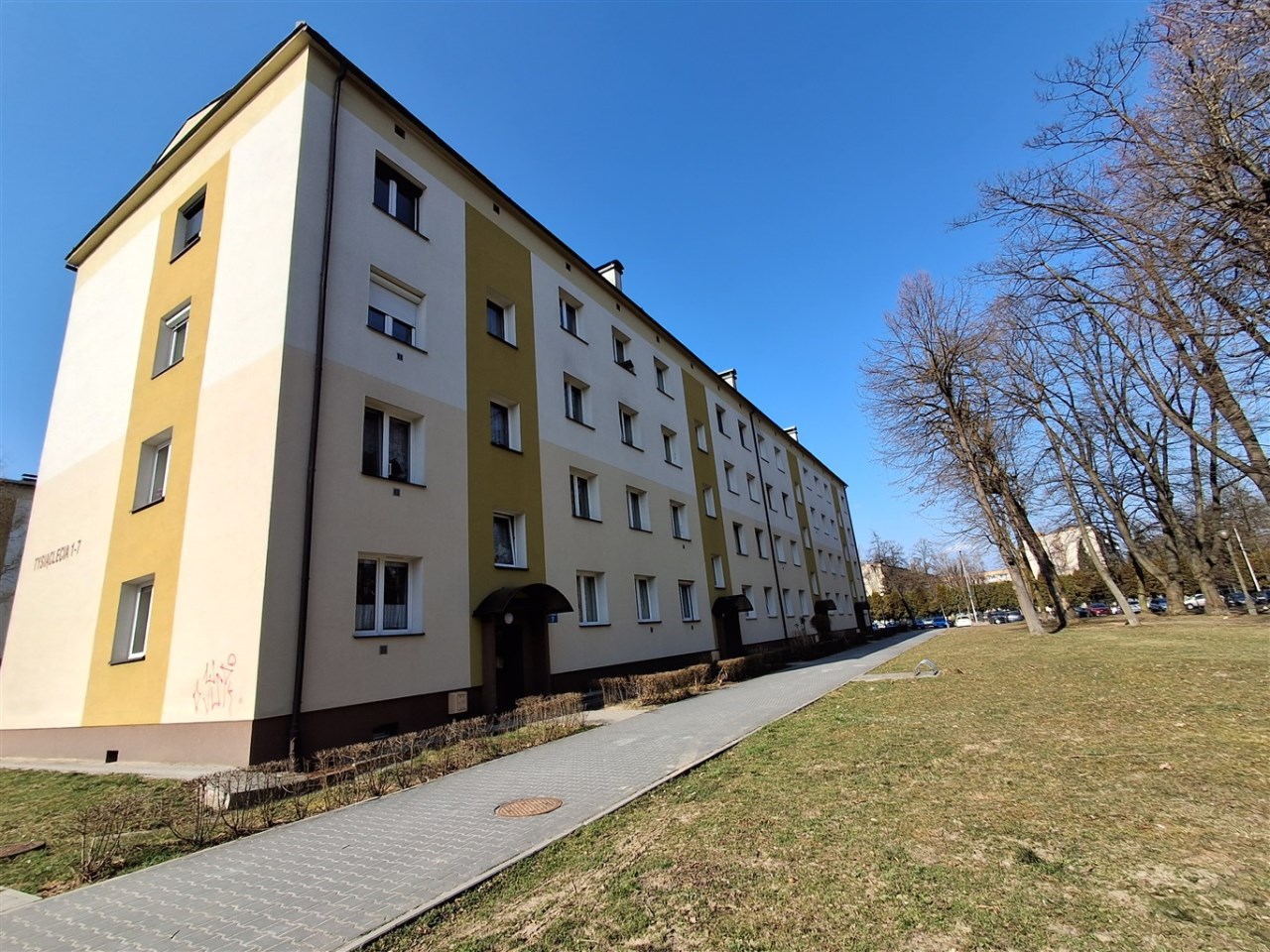 na parterze niższego 3-piętrowego bloku.