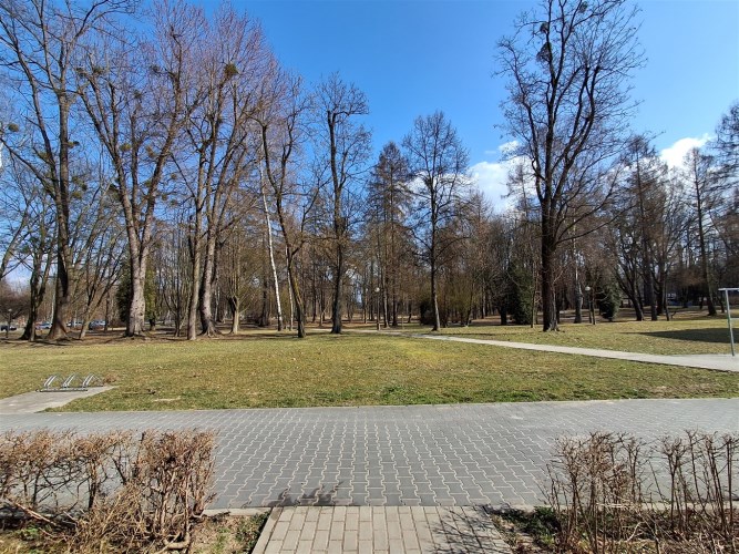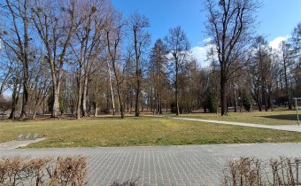 Po drugiej stronie ulicy duży ogrodzony Park z placem zabaw dla dzieci.