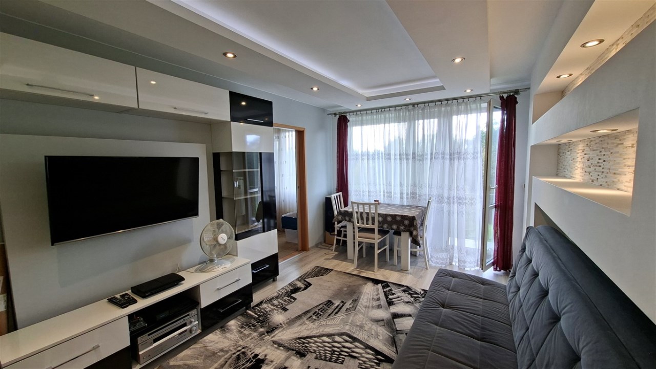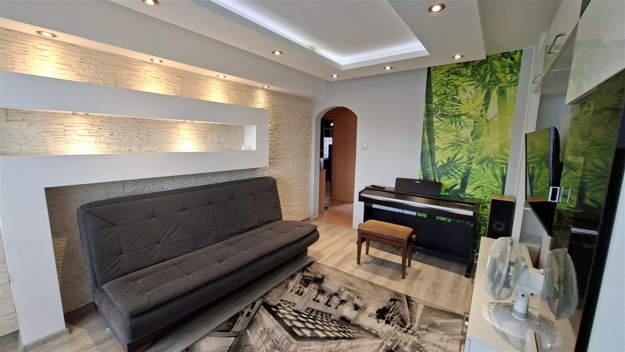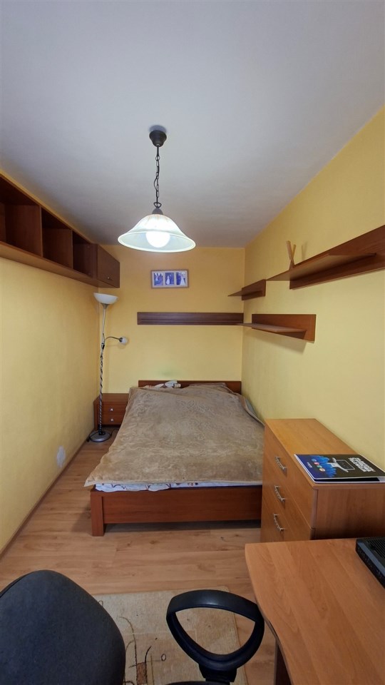 Mieszkanie o powierzchni 47,87 m2 w bardzo dobrym stanie składa się z dużego pokoju z wyjściem na balkon i przejściem do mniejszego oraz trzeciego, małego pokoju.